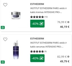 Eurovaistinėj internete geros nuolaidos kai kuriems Esthederm produktams. Nuolaidos galioja 01-31 - 03-01.