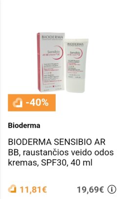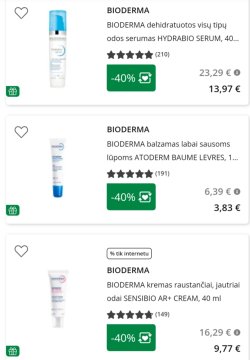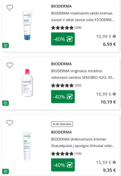 Eurovaistinėj internete daug Bioderma produktų su -40% nuolaida. Ir papildomą nuolaidą galima prisitaikyt 😊