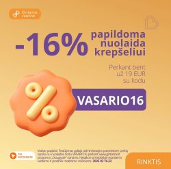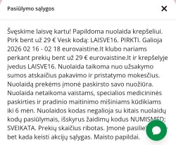 Eurovaistinėj internete vasario 16-18 d. papildoma -16% nuolaida perkant už 29€ 🛍️