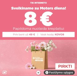 Eurovaistinėj internete kovo 1-8 d. papildoma 8€ nuolaida perkant už 49€ 🌸