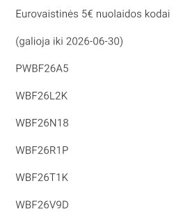 Už 20 € perkant galima papildomą 5€ nuolaidos kodą prisitaikyt 😊