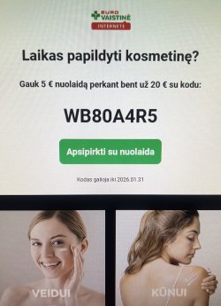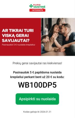 5€ nuolaidos kuponas, Eurovaistinėj internete perkant bent už 20€ 🤩