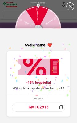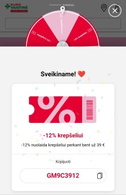 Gal kam aktualios laimės rato nuolaidos Eurovaistinėj internete? Galioja iki 02-08.