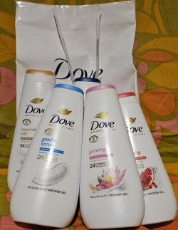Kelias dienas aktyviau padalyvavau facebook konkursuose, tai pavyko laimėti Dove dušo želės rinkinį