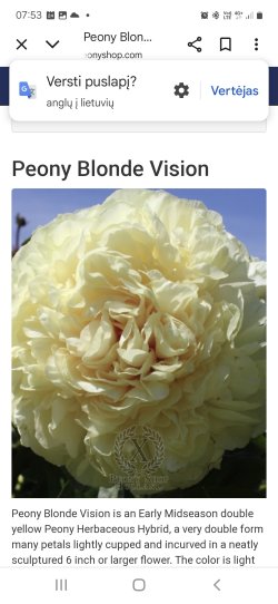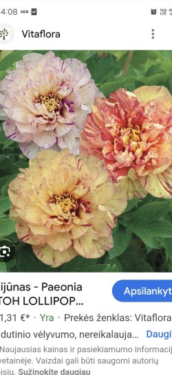 Šitas geltonas tai Itoh border charm. Dar turiu candy stripe, sarah bernardt, itoh lollipop. Ir tų gražių senovinių, kur skaniai kvepia, bei pirktų iš lidl tai jau pavadinimų nežinau, bet irgi labai faini. Lidl tai pirkau medėjančius bijūnus.