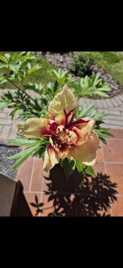 Čia buvo mano vienas iš svajonių bijūnų Itoh lollipop, bet kai nusipirkau ir pražydo tai labai nuvylė žiedas, net galvojau, kad sumaišė rūšis. Lauksiu kito žydėjimo, gal bus sustiprėjęs krūmas ir žiedas kitaip atrodys.