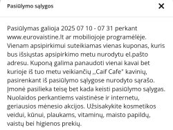 Dar nepirkau, tik pasiūlymu pasidalinau 😉 Bet nerandu nurodytos sumos, nuo kurios siunčia kuponą kavai ☕ Tai greičiausiai su kiekvienu užsakymu siųs 😊
