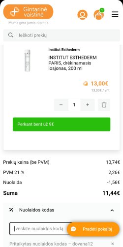 Dabar su papildomu nuolaidos kodu Dovana12 šio losjono kaina 11,44€ 🤩 Ir dar galima nemokamą pristatymą gaut į namus ar į paštomatą su kodu Pristatymas9575 😉