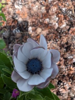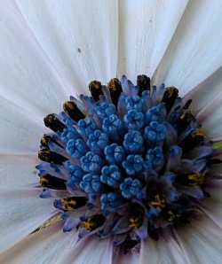 Tas mėlynas gėlės viduriukas kaip nuotakos puokštė man atrodo :) Gražus augalas.