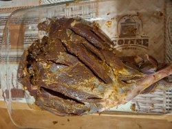 Kepsiu stirnos kumpelį, į įpjovas įdėsiu lašinukų, kad sausa nebutu, ir salotos, ( pekinas, pomidoras, agurkas, prieskoniai, aliejus. ) Gerų švenčiu.