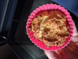 Varškės apkepą, kurį dėjau į keksiukų formas dėl 2 priežasčių: taip geriau valgo vidurinioji dukra ir taip maloniau pasiimti vėliau, kai atvėsta, nei kad kai būna paliktas mažas gabaliukas nuo didelio kepinio.