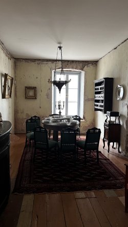 Du draugai Petras ir Karolis nusipirko si dvara aukcione ir pradejo ji restauruoti ir dometis jo istorija. Jau metus kaip jie veda eksukrsija. Paskutineje esiais metais man teko sudalyvauti- nuostabi kskursija, labai idomiai, smaiksciai, dvi valandos praskriejo tiesiog nepastebimai!