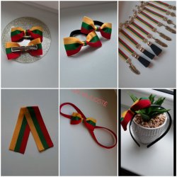 Apyrankės, kaklo papuošaliukai, auskarai, iš karoliukų. Ir plaukų aksesuarus pagrinde su trispalve bet darau ir visokius kitokius, lankeliai, gumytės, segtukai, galvajuostės, apyrankė. Knygos skirtukai, automobilio veidrodėlio, raktų pakabukai, varlytės gyvūnams, segės į drabužius.
