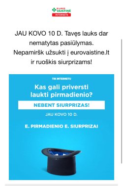 Galioja 2025 03 05 - 03 09 eurovaistine.lt klubo nariams perkant bent už 49 € eurovaistine.lt ir krepšelyje įvedus KOVO8.