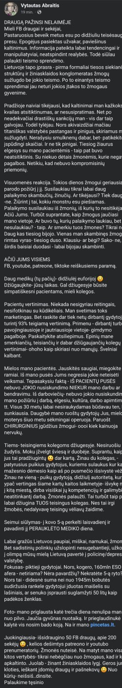 As ji atsimenu is studiju laiku pries daug metu.Atrode normalus.Bet kai pamaciau per kazkuria TV laida pandemijos metu,supratau kad negerai jam kazkas. Tikrai neiciau pas toki. O pasirodo klinikose jis dar konsultavo 1 k.per savaite iki praeito rudens. Ir dar privaciuose centriukuose. Siaubas.