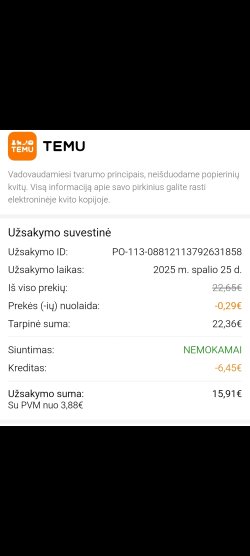 Taigi kas neturit siunčiatės per čia ir gaunate 100€ kuponų https://temu.to/m/uws10vni27d, taip pat pasirinktą prekę įsigyti galite su 90-95% nuolaida.