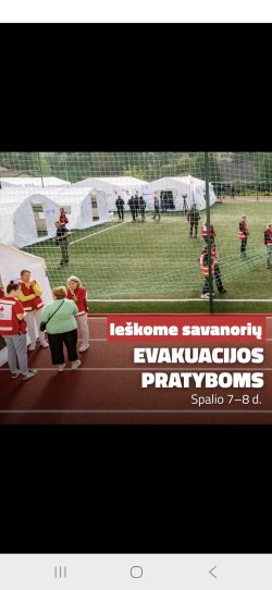 Dalinuosi, gal kam įdomu ir prisijungsite: Vilnius ruošiasi evakuacijos pratyboms – kviečiame dalyvauti 🚨https://forms.office.com/e/pQzAD67b0W Spalio 7–8 d. praktiškai išbandysime skirtingus gyventojų evakavimo plano scenarijus. Prie vieno iš jų gali prisidėti ir tu. ❗Užsiregistravę savanoriai bus evakuojami į priimančius miestus: Kelmę, Kėdainius, Kauną, Šiaulius ir Ukmergę. Čia bus suteikiamas maitinimas, vanduo, imituojama medicininė apžiūra ir pan. Nors pratybos vyks dvi dienas, savanoriai pagal savo galimybes galės pasirinkti, kokia apimtimi sudalyvauti – dalis liks nakvoti evakuacijos priėmimo punktuose, o kiti bus parvežami į Vilnių tą pačią dieną. ✅ Detalesnę informaciją apie pratybas gaus tik užpildę registracijos formą. Pasidalink šiuo įrašu su tais, kam gali būti aktualu!...