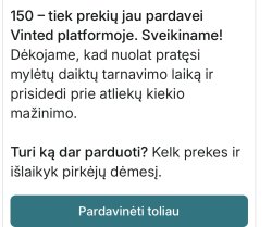 Ar gavot tokią Žinutę? Smalsu, kiek Pardavėt prekių Vinted platformoje. Aš 150 🧐😆...